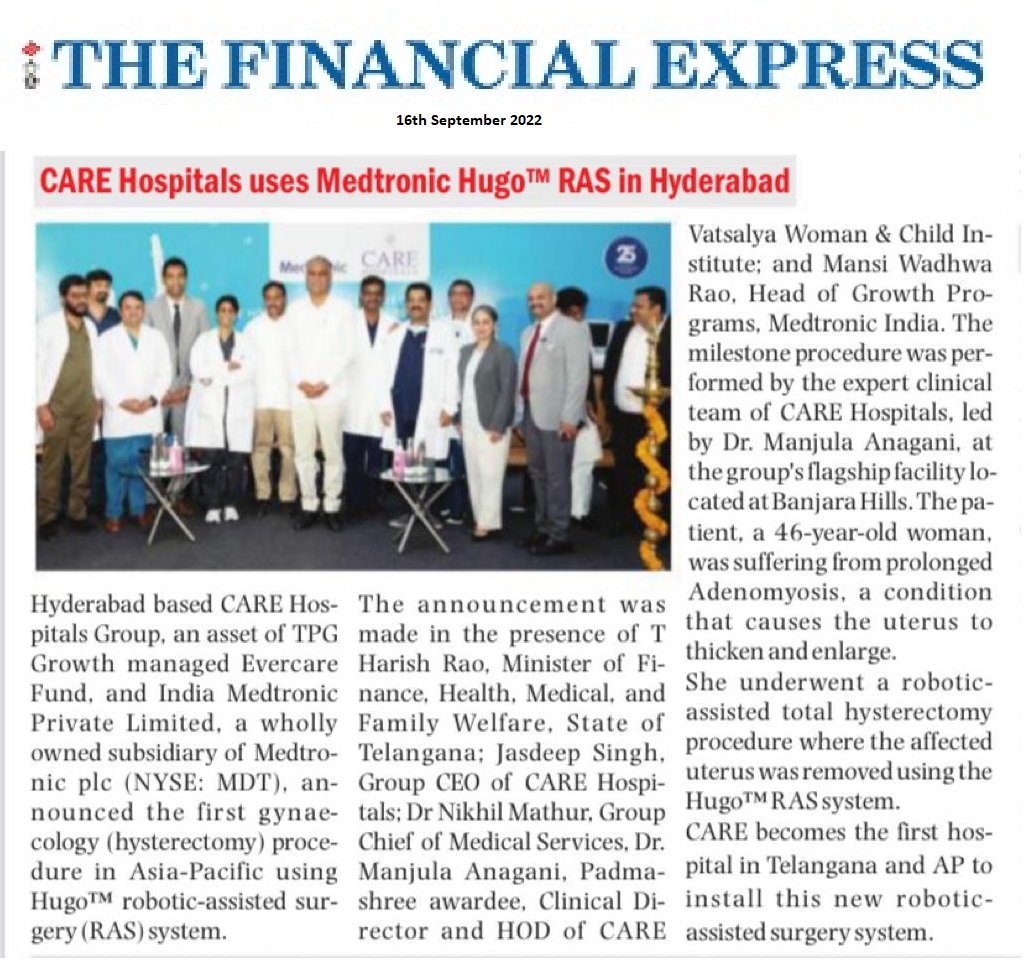Article on CARE Hospitals Advanced Robot Assisted Surgery Program Launch News Coverage in Financial Express