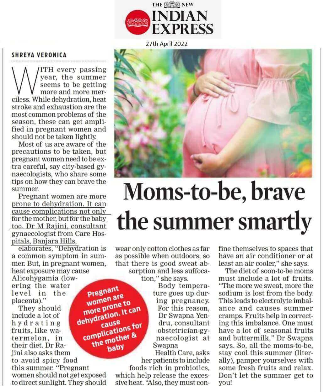 Article on Pregnant women Dehydration Problems by Dr. Muthineni Rajini - Senior Consultant Obstetrician and Gynecologist, Laparoscopic Surgeon, and Infertility Specialist