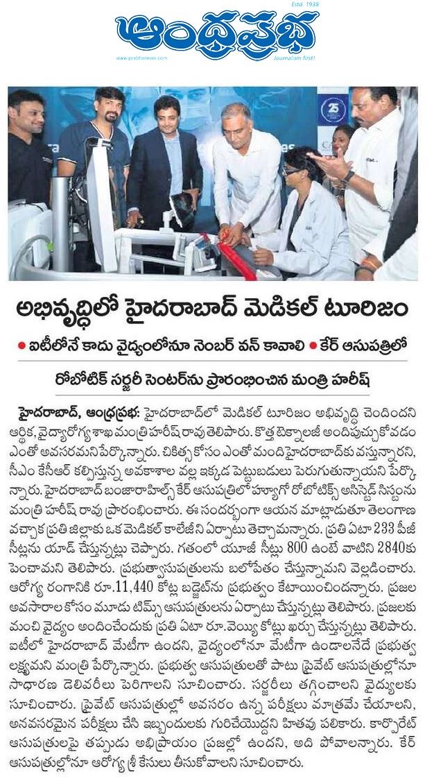 CARE Hospitals Advanced Robot Assisted Surgery Program Launch News Coverage in Andhra Prabha